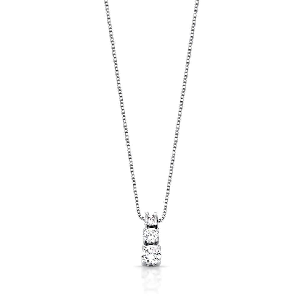 Corrente veneziana com pingente composto por três zircônias de 3mm,4mm e 5mm, banhado em ródio branco.